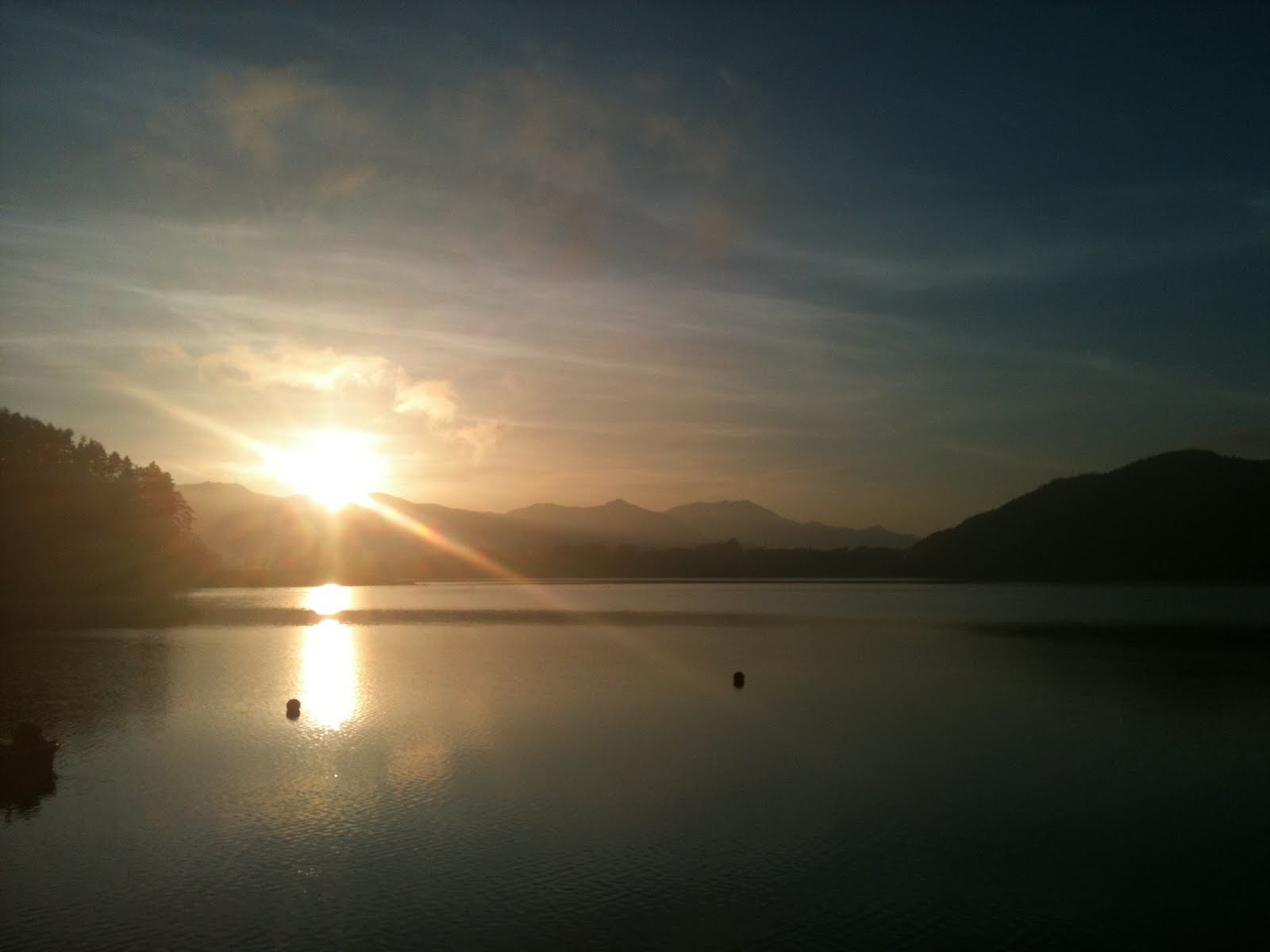 パーフェクトなタイミングで、あけぼのの時間に河口湖畔へ到着。